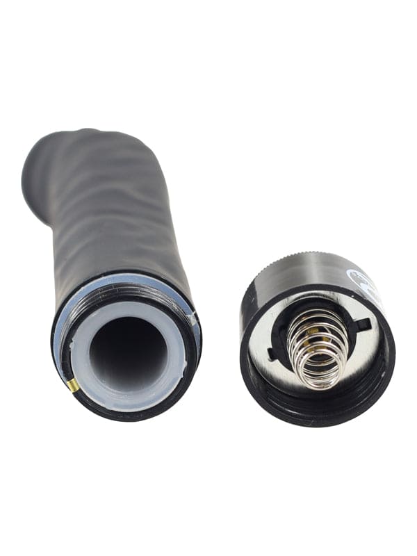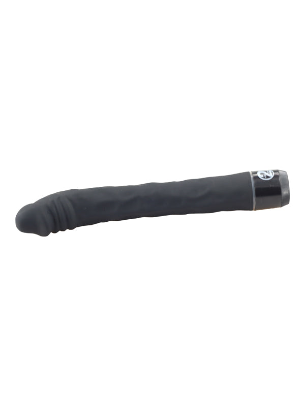 Zwarte vibrator gemaakt van ABS materiaal en heeft een afwerking van polyurethaan coating. De vibrator is licht geaderd en heeft een gebogen penisvorm. Vibratie is traploos regelbaar. Totale lengte: 19cm. Ø 2-2,9 cm. Batterijen 2 x AA.
