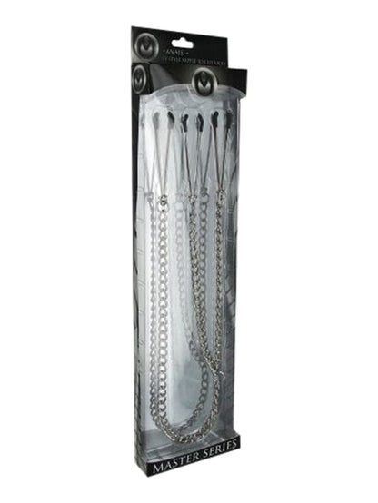 Verbind haar meest gevoelige zones met elkaar. De tepel en clitoris klemset heeft klemmen met vinylbeklede uiteinden, die aan kettingen bevestigd zijn. Een schuifring zorgt voor de gewenste trekkracht. Van juist genoeg om tepel en clitoris te verbinden tot een harde, kwellende en nijpende trekspanning en alle sensaties tussenin. De tepel en clitoris klemset zit goed vast, is handig in gebruik en is bovendien mooi.