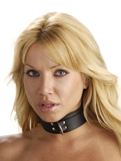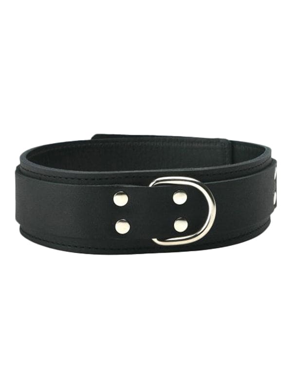 De strakke lichtgewicht kraag, met leer bekleed, is zeer betaalbaar en knap ontworpen. In tegenstelling tot veel andere goedkope leren kragen, is de binnenkant van deze kraag bekleed met afgewerkt leder dat glad aanvoelt tegen de huid. De kraag is 3,8 cm breed en past rond een nekomtrek van 31,8 cm tot 45,7 cm. Een solide stalen D-ring aan de voorkant zorgt voor een bevestigingspunt wanneer je een slaaf aan de lijn wilt houden.