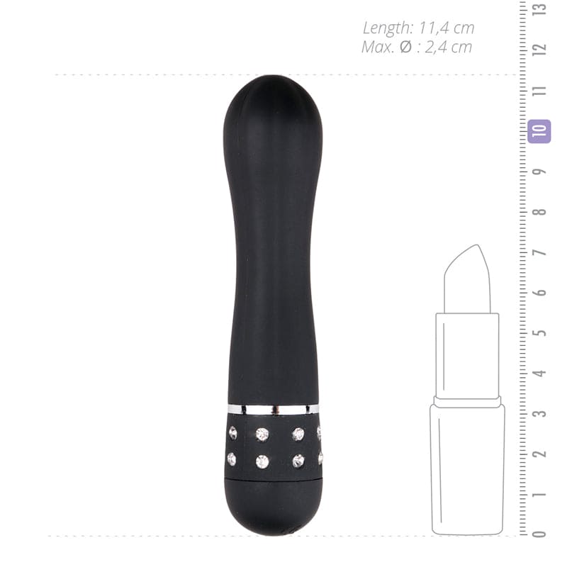 Met deze handige mini vibrator met groeven van Easytoys hoef je je vibrator nooit meer thuis te laten. Hij heeft het perfecte formaat om met je mee te dragen in je tas of zelfs in je zak. Ook is hij natuurlijk ideaal om mee te nemen op reis. De vibrator ziet er zeer stijlvol en elegant uit met zijn klassieke zwarte kleur en glinsterende diamantjes aan de onderkant. Zowel de ronde kop als de verticale groeven zijn speciaal ontworpen om jou nog meer stimulatie te geven en doordat de vibratiesterkte instelbaar is, kun je hem zo instellen dat hij helemaal aan jouw wensen voldoet.
