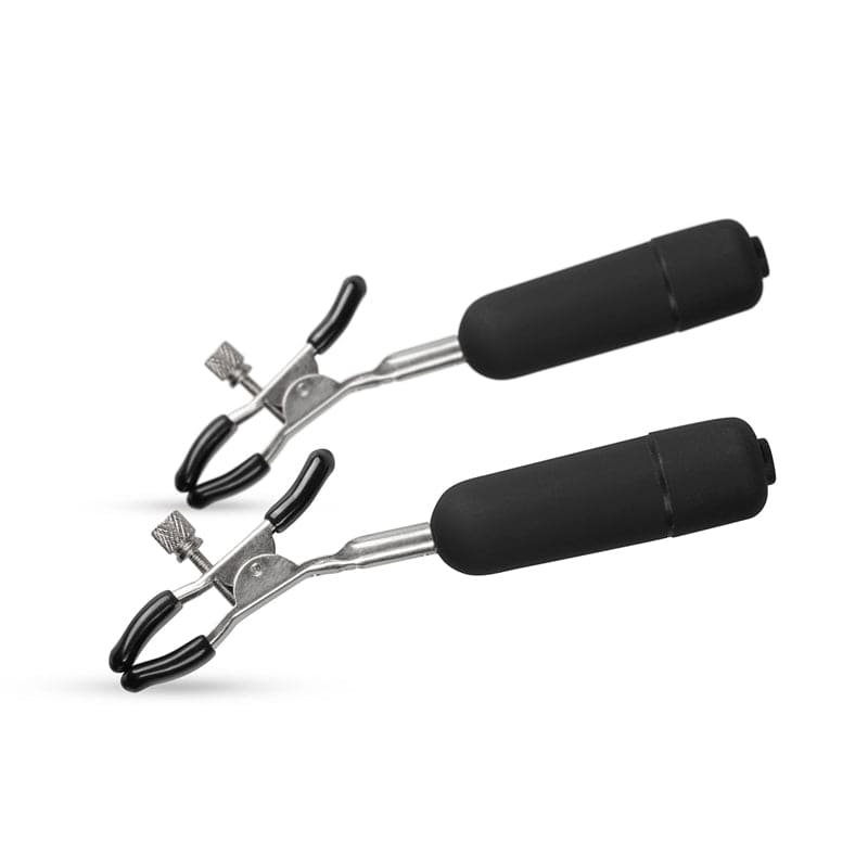 De vibrerende tepelklemmen van EasyToys geven jouw tepels alle aandacht die ze verdienen. De metalen klemmen zijn voorzien van zwarte bullet vibrators. Hierdoor voelen ze zwaarder aan dan standaard tepelklemmen en stimuleren ze extra. De klemmen zijn verstelbaar met schroefjes waardoor je zelf bepaalt hoeveel druk je op je tepels krijgt. De bullet vibrators zijn voorzien van 10 verschillende standen en hebben anti-slip topjes waardoor ze uitstekend blijven zitten. je ontvangt bij deze vibrators gratis batterijen waardoor je direct aan de slag kunt!